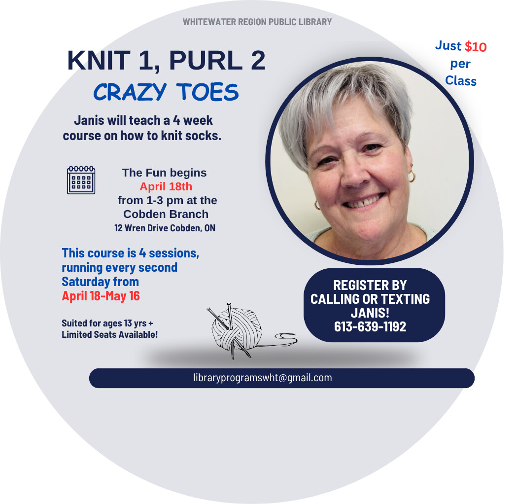 Join us on Tuesdays in Beachburg and Thursdays in Cobden between 4:00-5:00 pm for the After School Club. The activities are designed for children 4-10 years old accompanied by an adult. For more information please contact Summer at libraryprogramswht@gmail.com.